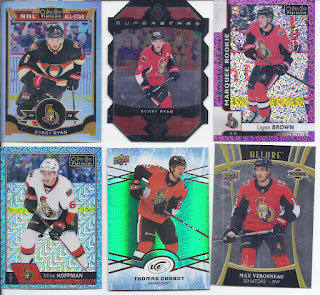 Here they are!Starting with the small one. I usually just pick up whichever one is at the front of the hanger pegs, but having a Sens card, and one that isn't from flagship, as the opener, makes buying the first one I see easy. That one isn't a dupe, even it the second one was. As great as seeing the stick bend on the Guentzel is, it is also a dupe..The Value Bundle contents.That's some great junk wax star power in the 5-card pack with Hull and Fedorov showing up. For those that don't want to squint at the Metal Universe card, that's Sean Monahan there.