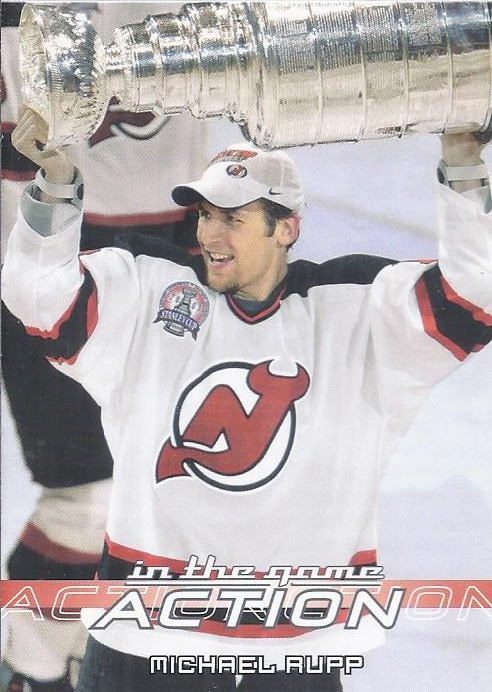 Michael Rupp's first playoff goal of his career in 2003 was the one that was the Stanley Cup winning goal for his Devils team. That makes this card featuring the Cup lift even sweeter.