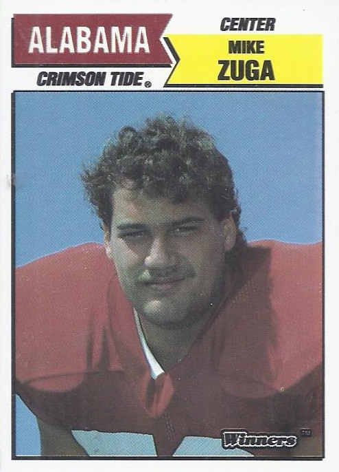 Mike Zuga never reached the NFL, but he still got this card out of Winners in 1988. I can't find out what Winners was. A local card company? An Alabama store? Either way, he debuts in the binder.