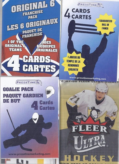 The Original 6 pack was Detroit, and half of them were cards from the "Foil isn't very legible" years. That's Slava Kozlov in the top corner, and Aaron Ward in the bottom left.