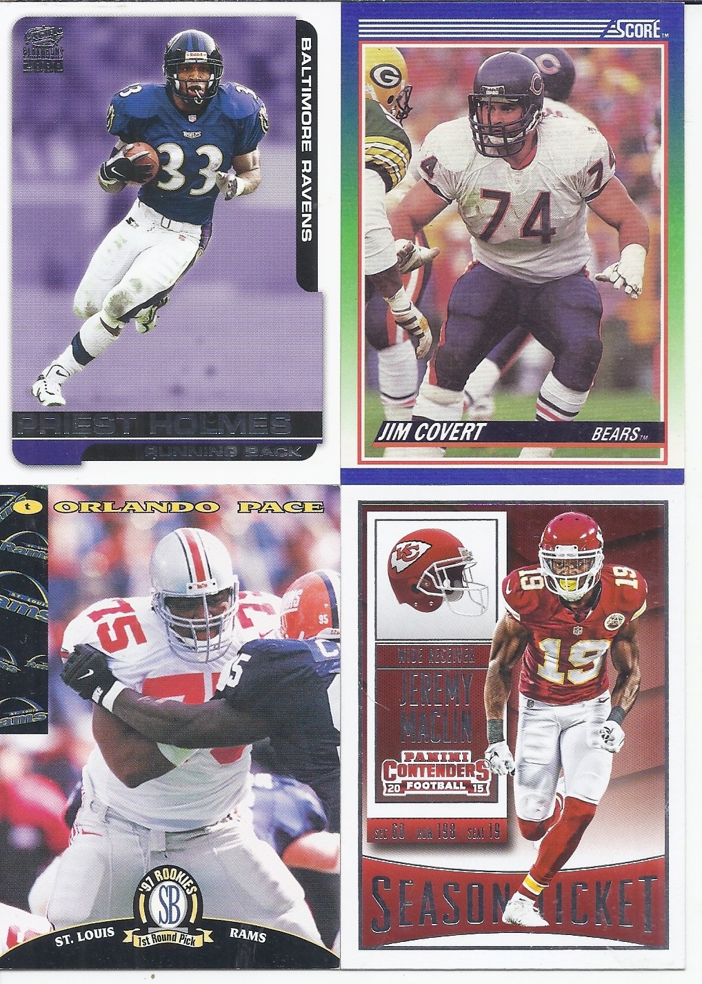 but another one on the back, featuring a different team (albeit one he also spent significant time with). And here's the biggest surprise in the repack - that Orlando Pace card. While he definitely has better options from his rookie year, I was not expecting a rookie card of one of a #1 draft pick, and one of the top offensive linemen of all-time. The Maclin was the visible card on the other side.