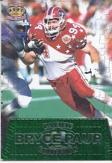 I may have minis in my Bills collection, but until this, no oversized cards. This 1996 entry, out of Pacific Pure NFL Gridirion is my first. And wow, is that ever a 90s Pro Bowl jersey. These were dupes for the 2/14 collection, but they are still perfect for my Bills collection!Time for the volume portion of this post. I like that 1000 yard club of Thurman Thomas for the photographic oddity of having a QB cameo on the card that isn't Jim Kelly, but Frank Reich. Remember when Action Packed was the peak of card technology for base releases? And then we'd get shiny cards, and die-cut cards and acetate cards and relic cards and so much more. Rob Johnson might not be anything close to the most popular player in franchise history, but at least that card hits the sweet spot of having infield dirt on the photo. Sure, I may have played as many downs for the Bills as Jake "Elite White Person" Fromm, but that doesn't mean I don't want cards of his. I like how on the Illusions card, they handled team RB history with a quality, but surprising choice of Willis McGahee over the usual Thurman Thomas. They did use the far more expected Jim Kelly to combine with Josh Allen elsewhere in the base set.